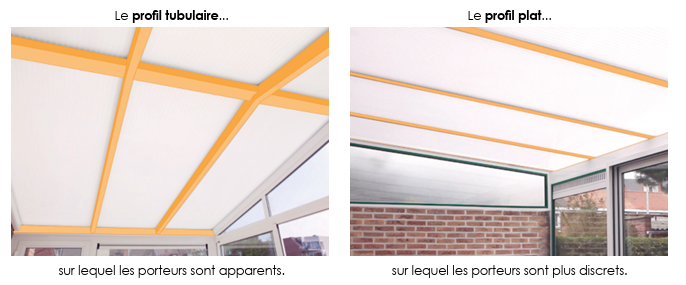 Le toit dâune vĂ©randa est gĂ©nĂ©ralement composĂ© de travĂ©es, sĂ©parĂ©es par des porteurs (barres structurelles en aluminium, appelĂ©es profil tubulaire ou profil plat).